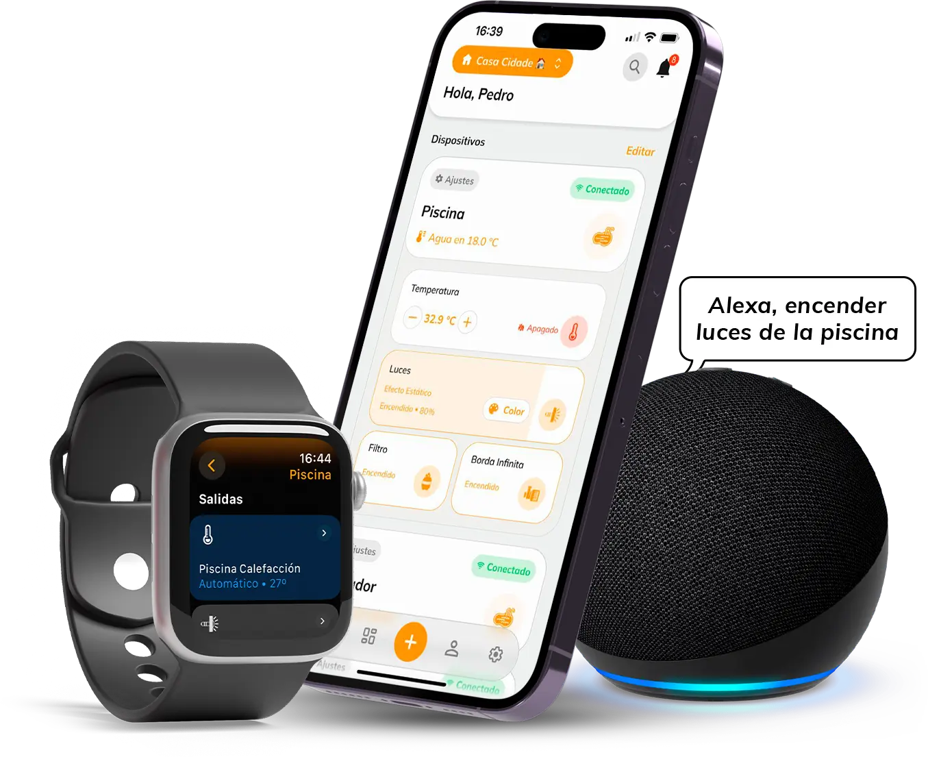 Iluminación, automatización, calefacción y tratamiento, todo en la palma de tu mano. Ten control total de tu espacio de recreación de manera práctica y eficiente, logrando mayor ahorro y sostenibilidad en tu rutina.