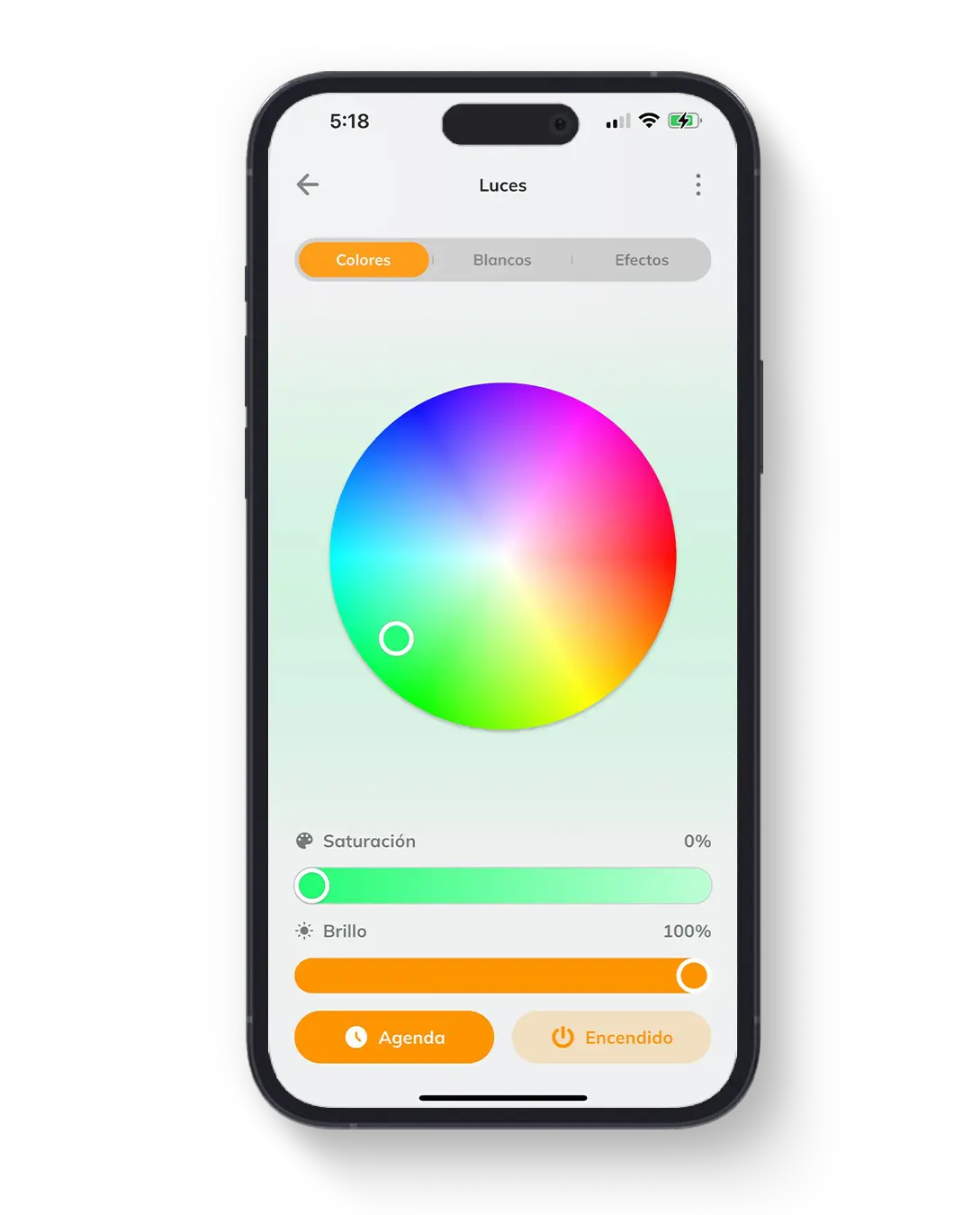 • Programación horaria con selector de color y brillo;