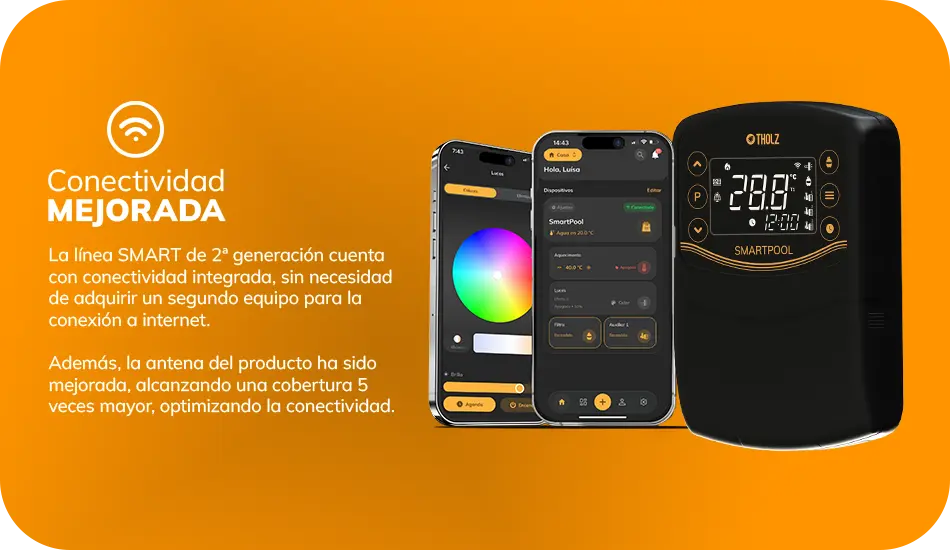 Ten el control de tu piscina a través de la app Tholz Casa Inteligente, control remoto, comando de voz, Apple Watch o directamente desde el módulo SMART.