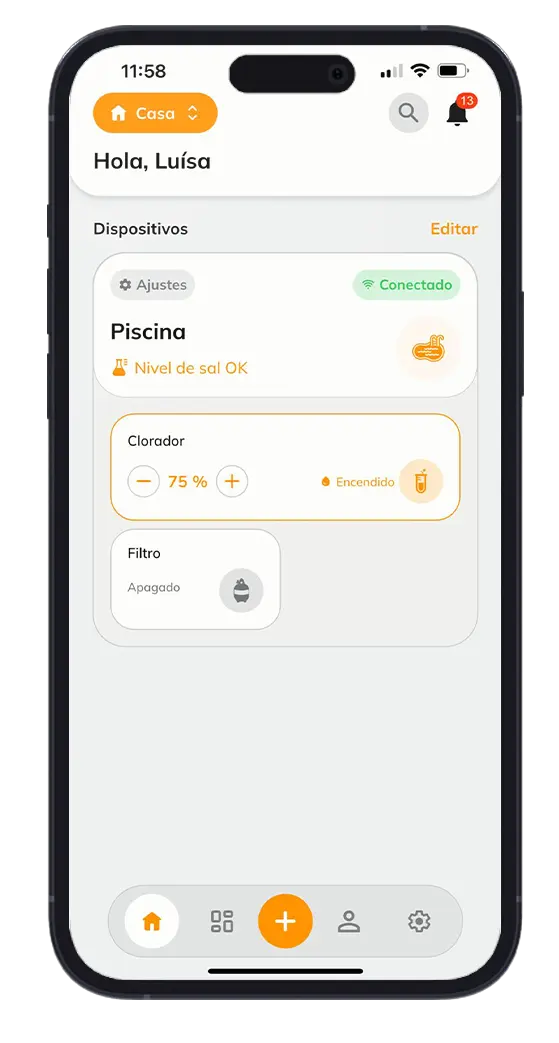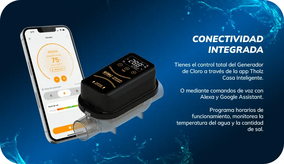 Tienes el control total del Generador de Cloro a través de la app Tholz Casa Inteligente.
