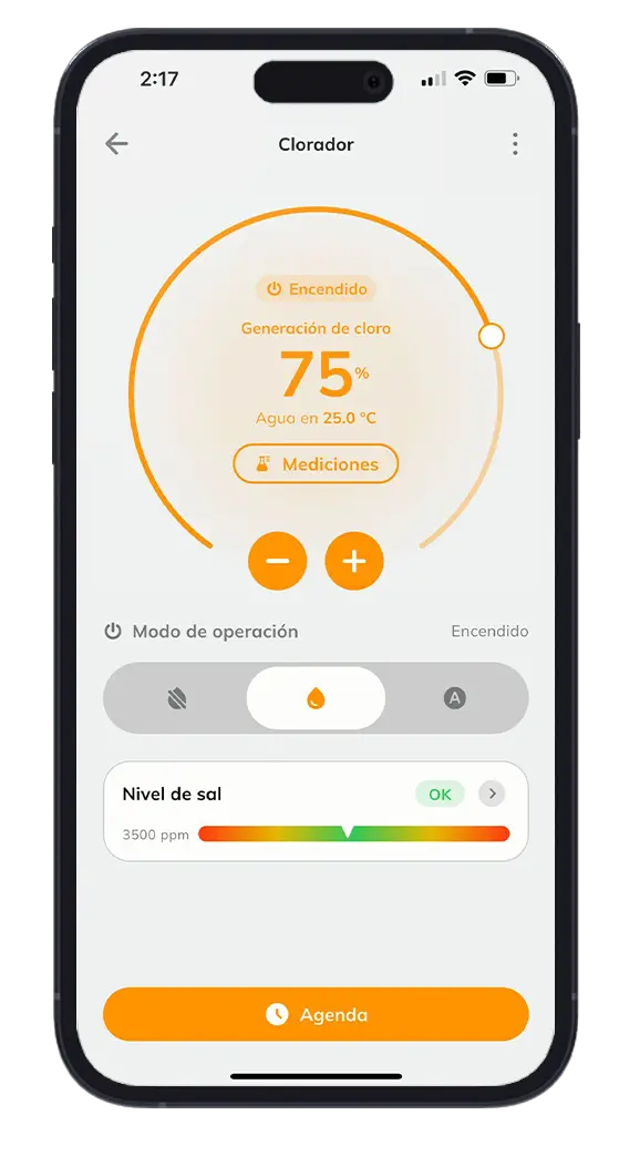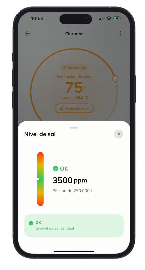 Supervisa la necesidad de agregar más sal, manteniendo las condiciones ideales para el uso de la piscina.