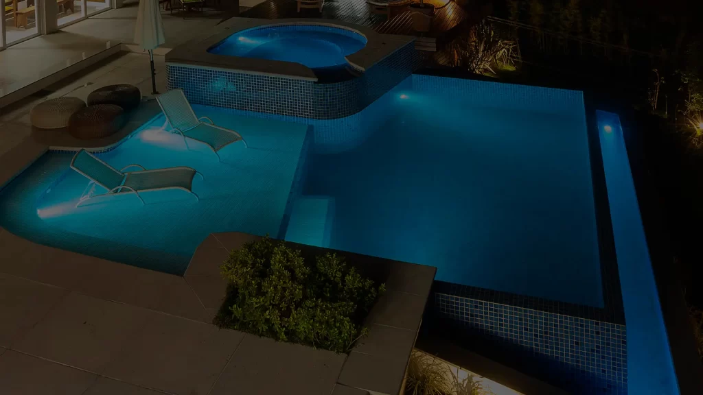 Qual o formato da sua piscina? Retangular, oval…ou de repente pretende fazer um design mais exclusivo, com a sua personalidade? De acordo com a sua escolha, a iluminação pode ser utilizada para exaltar os pontos principais ou mesmo trazer ao desenho da piscina um formato ainda mais atraente e inusitado.