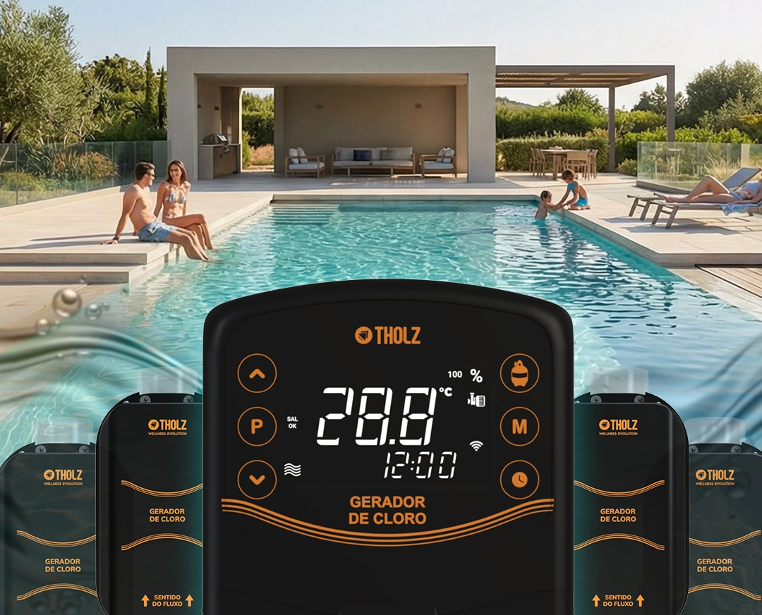 Centralizando o controle de até cinco geradores de cloro, ele elimina ajustes fragmentados, reduz erros de dimensionamento e garante um tratamento de água mais estável e eficiente.